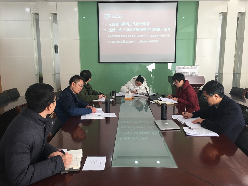 1月8日上午,材料学院党委领导班子在材料楼会议室开展党风廉政专题教育。会议由院党委书记吕琳华主持。 吕琳华从传达学校《关于做好2021年元旦春节期间正风肃纪工作的通知》出发,要求学院党委加强节日期间监督检查,加强党风廉政建设,确保元旦春节期间风清气正。 会议提出以下要求:1.提高政治站位,切实履行主体责任。2021年是中国共产党成立100周年,是“十四五”规划开局之年,也是学校决胜高水平大学建设的关键之年,贯彻落实《通知》要求、做好元旦春节期间正风肃纪工作,对于回应师生期待、保障开局起步具有重要意义。学院党委要组织传达学习中央和省委《关于做好2021年元旦春节期间有关工作的通知》精神要求,结合学校实际,梳理分析本单位在疫情防控、关爱困难师生、保障师生平安有序出行、安全生产、维护校园稳定等决策部署贯彻落实中的堵点难点和短板弱项,制定务实有效举措,确保《通知》部署的各项任务落地见效。2.紧盯苗头倾向,从严纠治“四风”。学院党委高度关注《通知》所列“四风”重点问题,加强监督检查,严防“四风”反弹回潮。3.深化以案促改,推进综合治理。学院党委要充分运用中纪委和省纪委通报的违反中央八项规定精神典型案例,进一步加强对党员干部思想道德和党纪国法教育,教育督促党员干部增强党性修养、破除特权思想,自觉践行“三严三实”,做到廉洁修身、廉洁齐家。举一反三,主动对照案例,深入查找制度漏洞,进一步完善制度体系、提升治理能力。
