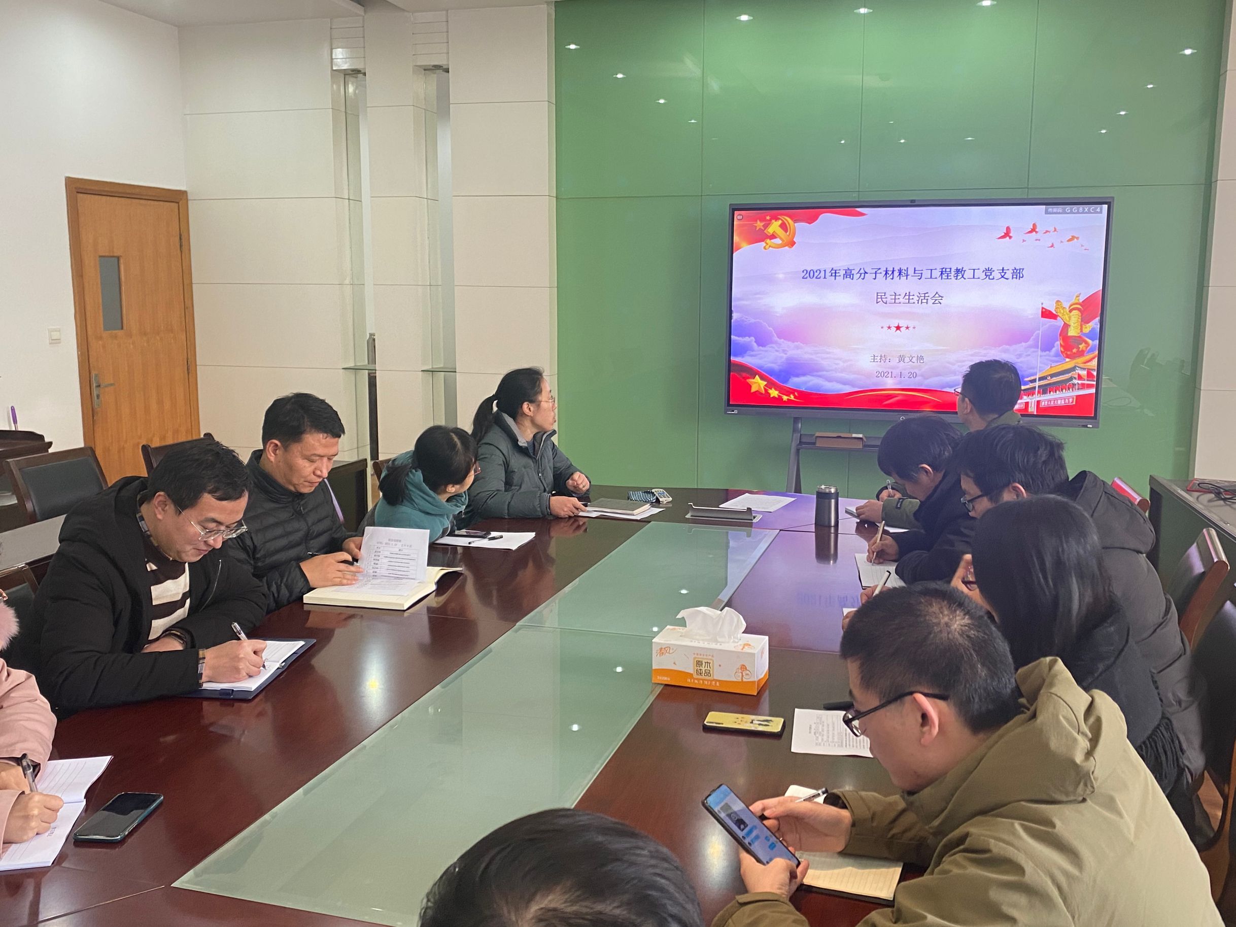 贯彻执行上级党组织部署,认真学习习近平新时代中国特色社会主义思想,加强政治建设,全面贯彻党的教育方针,不断强化基层党组织整体功能,提高高校教师的教学科研水平,材料学院高分子材料工程系教工党支部于1月20日下午召开了2021年度基层教学党组织民主生活会,会议由党支部书记黄文艳主持。 黄文艳从六个方面对2020年的支部工作进行总结,回顾了申请国家一流本科专业以及工程教育认证过程中全体高分子教研室凝心聚力的工作,充分肯定了每位支部党员在高分子专业建设中所作的先锋模范作用和突出的贡献,同时也针对工作中出现的问题和不足进行检视,根据“双带头人”党支部书记工作室和优质党支部的建设要求,对2021年的支部工作计划进行详细的部署。 民主生活会上,支部党员开展批评与自我批评,对党支部班子现存的问题进行反思,对2021年党支部开展的活动提出了宝贵的建议;同时,党支部成员紧扣主题,坚持理论联系实际,坚持问题导向,进行自我检查、党性分析,严肃开展批评和自我批评。会前支部书记与支委,支委与党员之间,党员与党员之间进行了谈心谈话。 会议最后,经过民主评测,高分子材料与工程系教工党支部评选出黄文艳、曹峥、成骏峰、马文中、蒋其民五位老师为本年度的优秀党员。