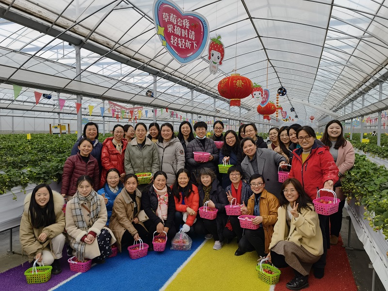 第111个“三八”国际劳动妇女节来临之际,为充分展示女性同胞的时代风采和昂扬向上的精神风貌,材料学院分工会组织了女教职工草莓园采摘活动,实地感受现代设施农业技术。 午后阳光正好,大家来到位于奔牛镇的上田草莓园,那红红的草莓,闪耀在绿叶间,徜徉在阳光下,有点甜,再带点清新的酸,给人以无限遐想。这里种植的草莓,与其它地方见到的不一样,草莓不是长在地上,而是生长在半空,老师们像逛超市一样,边观赏边采摘。上田草莓园内环境整洁干净,大家边采摘,边品尝,并不时地驻足欣赏、拍照留影,尽情地感受现代化、高颜值果园采摘的乐趣。 在一阵阵的欢声笑语中,老师们带着恋恋不舍满载而归。