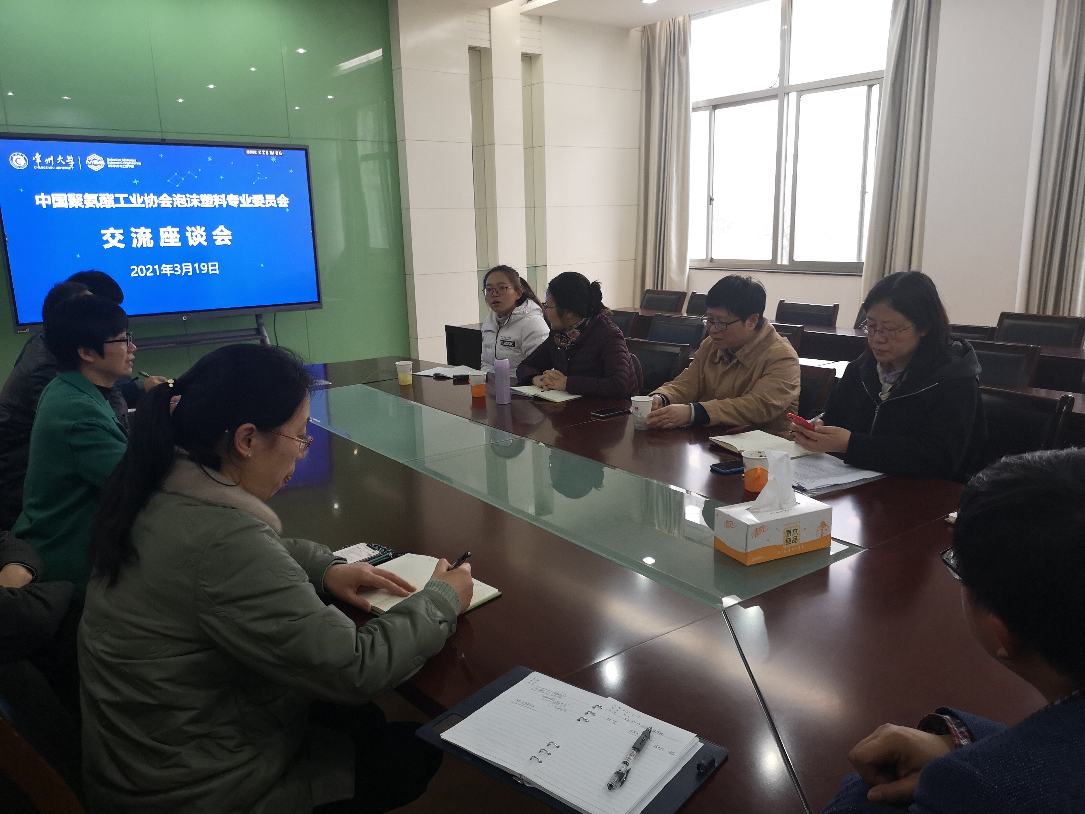 2021年3月19日下午,中国聚氨酯工业协会泡沫塑料专业委员会秘书长林霞,南京林业大学理学院院长/中国聚氨酯工业协会专业委员会副主任罗振扬教授,《聚氨酯工业》期刊主编李颖华及协会工作人员王苏宁一行走进常州大学材料学院,并参观了材料学院国家级实验示范中心和国家一流专业实验平台,并与高分子材料与工程系,材料化学系的相关老师进行座谈,会议由材料学院党委书记吕琳华主持,吕书记详细地介绍了材料学院概况,高分子材料与工程系和材料化学系的一些教学科研的基本情况和两个专业学科发展方向的建设。林霞秘书长对中国聚氨酯工业协会对推动行业的发展所起得支撑作用进行了详细介绍,对高分子材料与工程专业、材料化学专业在塑料加工和聚氨酯技术领域的研究提出了殷切的希望,与相关老师就行业的发展进行了深入探讨,表示协会将在增进企业与高校的技术交流过程中搭建良好的平台,为我国塑料加工和聚氨酯工业技术水平的推进做出一点贡献。罗振扬教授对中国聚氨酯工业的发展及最新研究进展为与会老师做了详细的介绍,同时与高分子材料与工程专业老师针对虚拟仿真项目进行了交流。李颖华主编听取高校对协会及《聚氨酯工业》期刊工作的意见和建议。与会老师们详细介绍目前各自的科研情况,对聚氨酯领域的研究成果进行讨论交流。通过本次交流,协会专家们对常州大学在高分子材料、塑料加工、聚氨酯技术领域的科研现状深入的了解,增进了协会、企业与高校之间的合作交流。