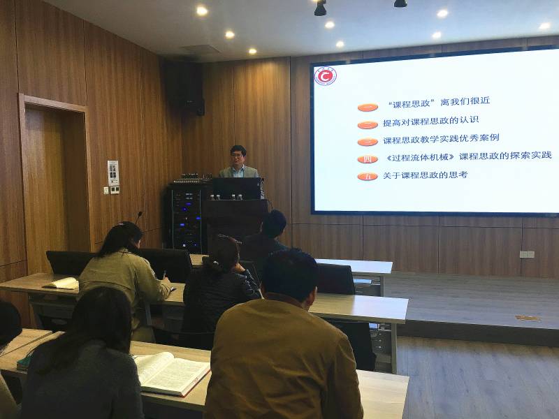 为深入贯彻落实高校思想政治工作会议和全国教育大会精神,落实立德树人的根本任务,提升学院教师课程思政教学和育人的能力水平,4月14日下午,校教务处、教师教学发展中心和我院党委联合举办了课程思政专题培训。校教务处薛冰处长和机械与轨道交通学院课程思政教学名师高光藩教授应邀做课程思政专题报告,学院60余名教师参加了本次培训。培训会由副院长张帅主持。 薛冰处长以《“润物细无声”—课程思政就在您身边》为题,从课程思政的发展历程、是什么、做什么和怎么做四个方面进行阐述,为我院教师解读了国家和江苏省对于学校课程思政的基本要求及内涵,就如何提高对课程思政的认识进行了探讨。 高光藩教授以《专业课与课程思政的关联与融入》为题,主要围绕课程认知、学创中心、路径探索和被动反转四方面分享了其团队在《过程流体机械》课程思政融入途径方面的经验与成果。 此次培训主题鲜明,内容丰富,深入浅出,入脑入心,不仅在课程思政建设方面给予教师深刻的启示,同时对于推进我院课程思政教育教学工作,帮助教师更好地将思政之“盐”融入之“水”,润物无声,相互成就,形成协同效应具有重要的启发作用。