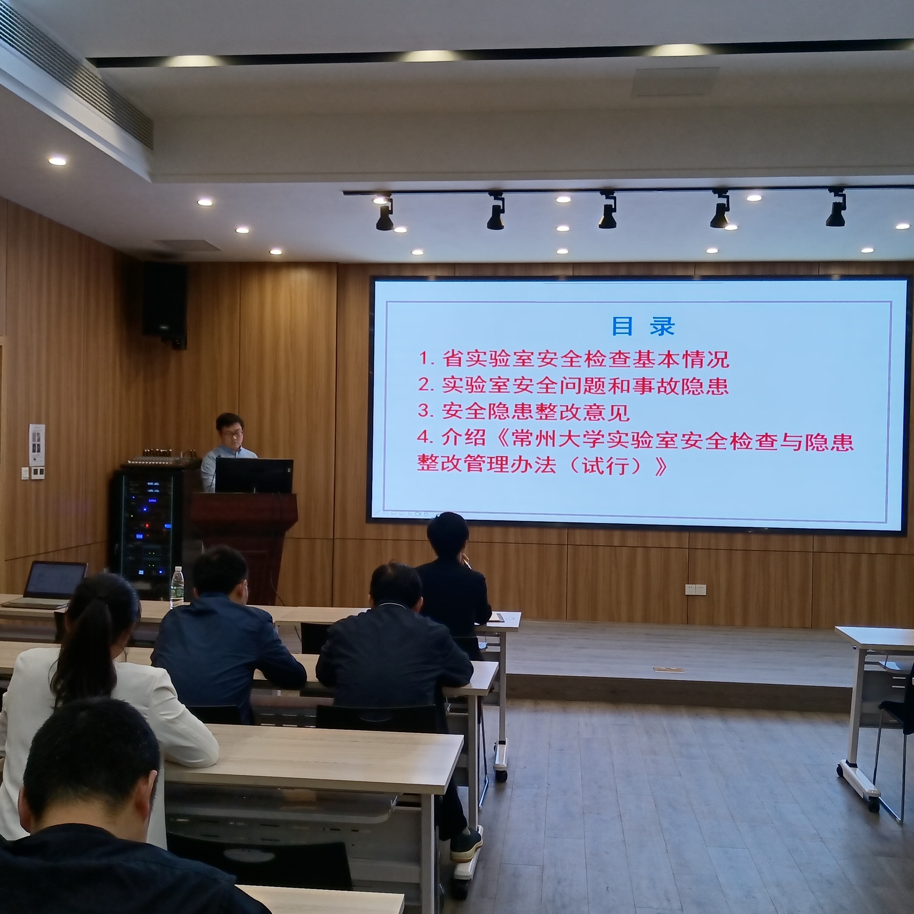 针对省高校科研实验室安全检查专家组前期对学院实验室安全检查提出的问题和落实《常州大学实验室安全检查和隐患整改管理办法(试行)》,5月19日下午,学院召开了全院教职工大会,会议由副院长张帅主持。 会上曹峥老师对前期实验室安全检查发现的问题和《常州大学实验室安全检查和隐患整改管理办法(试行)》进行了详细的解读,还向教职工介绍了我院安全隐患的整改方案。实验室安全关乎每一位师生员工切身利益,我院实验室的安全管理具有复杂性和多样性特点,要从思想认识、责任体系和排查整改这三个方面强化我院实验室安全管理。学院拟开展针对实验室危险化学品管理的重点部位和薄弱环节进行重点监管和全面排查,按照“全覆盖、零容忍”的要求,对排查发现的安全隐患积极整改落实。学院领导班子将以昂扬的精神状态、务实的工作作风,层层压实责任,确保实验室安全,为学院高质量发展保驾护航。