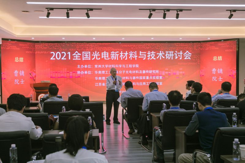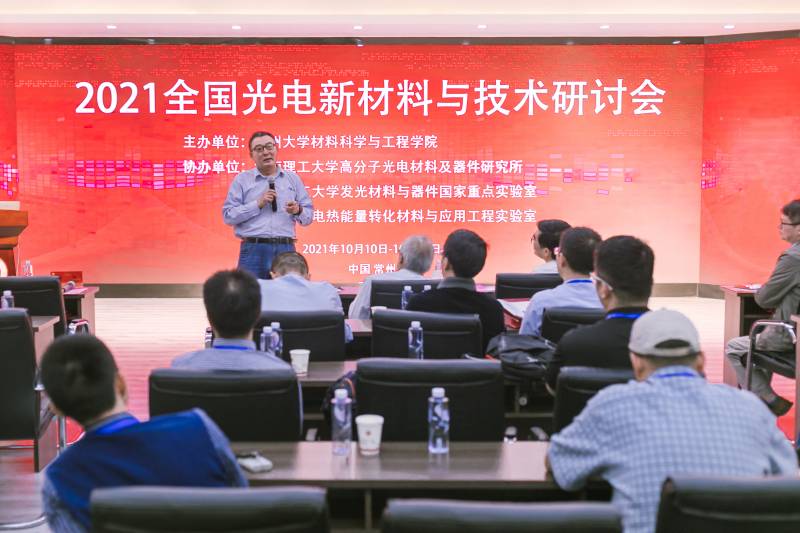2021年10月10-12日,由常州大学材料科学与工程学院主办,华南理工大学高分子光电材料及器件研究所、华南理工大学发光材料与器件国家重点实验室、江苏省光电热能量转换材料与应用工程实验室共同承办的2021年全国光电新材料与技术研讨会在我校召开。中国科学院院士、华南理工大学曹镛教授,发光材料与器件国家重点实验室主任马於光教授、副主任黄飞教授,常州大学校长蒋军成教授、副校长陈海群教授,以及来自华南理工大学、中国海洋大学、天津大学、江汉大学等三十余所高校、科研院所及企业的专家学者齐聚常州,共话光电材料与技术的研究与发展。 本次会议由开幕式和主题报告环节组成。开幕式由常州大学材料学院院长朱卫国教授主持。蒋军成首先致欢迎辞,并简要介绍了学校在学科建设、人才培养、科学研究、社会服务等方面取得的成绩。他表示加快光电元器件及配套材料等基础产业发展,发展清洁能源和新能源,对深化电力体制改革,实施可再生能源替代具有重要意义。他希望此次研讨会为国内光电材料领域的专家学者提供学术交流、思想碰撞和深入合作的平台,进一步推动国内光电材料领域的创新与发展,也希望各位与会专家为常州大学材料学科建设问诊把脉、建言献策。曹镛对会议的召开表示祝贺,希望与会专家踊跃发言,在此次学术会议中得到新启发与收获。黄飞介绍了发光材料与器件国家重点实验室在学科建设、科学研究、师资队伍及人才培养方面取得的成绩,并充分肯定了与常州大学的合作,希望双方继续保持合作态势、在科学研究、人才培养和学科建设等方面取得更多的合作成果。