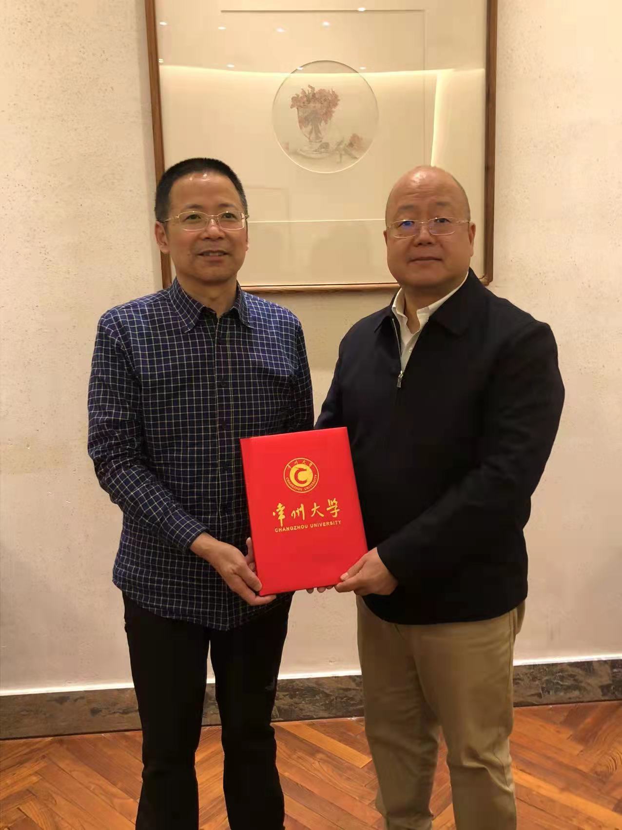 校党委常委、副校长 校友总会副会长兼秘书长陆锦冲向连云港校友会韩江龙会长颁发捐赠证书
