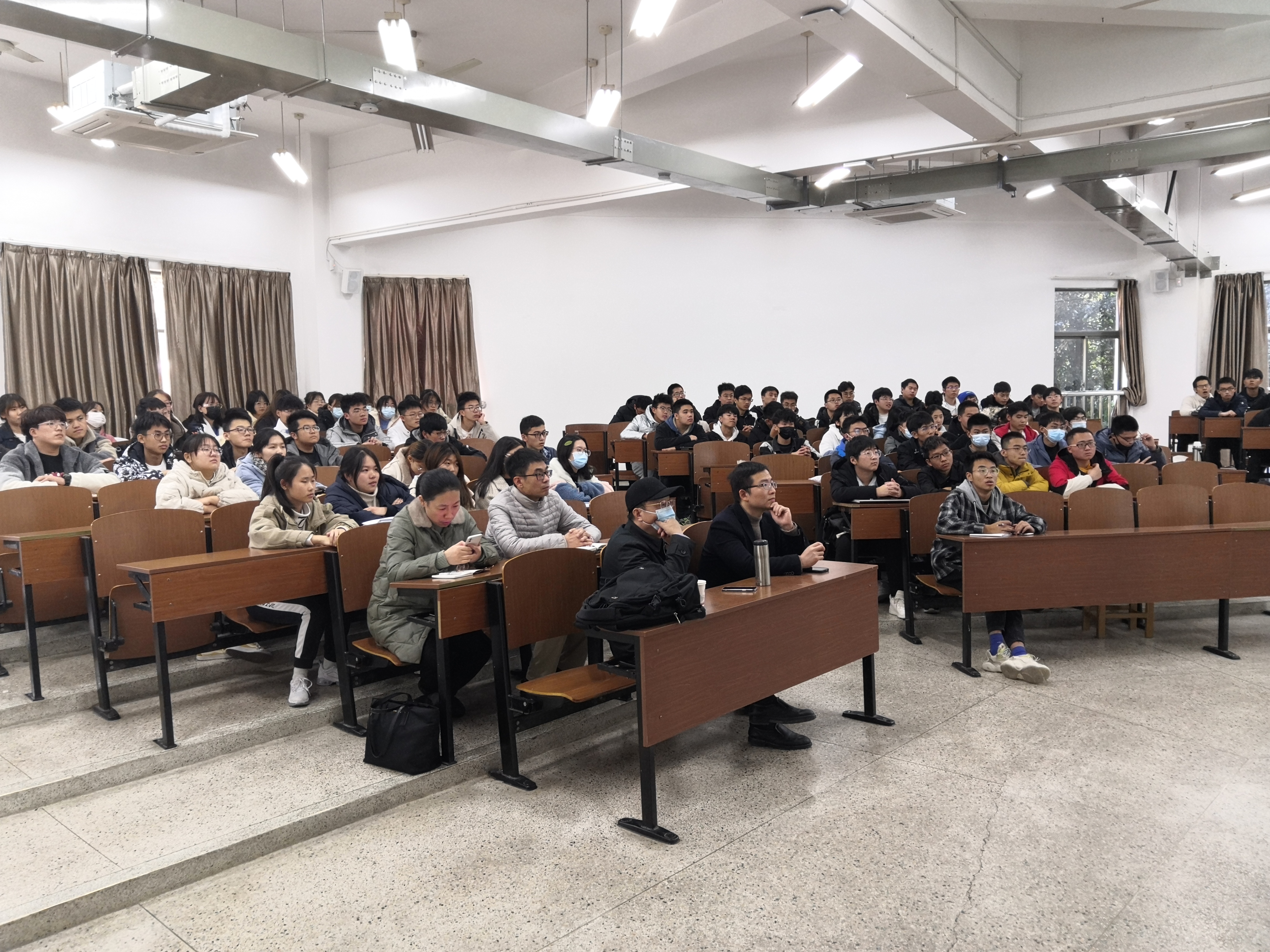 12月1日下午13:30,高分子专业邀请同济大学教授浦鸿汀于W15阶开展2021级新生专业思想教育讲座,材料学院副院长张洪文、张帅,高分子专业系主任黄文艳以及高分子专业2021级全体新生参加了讲座。 浦鸿汀围绕“新能源与能源材料”主题进行了交流分享,以从古到今的能源发展历程为切入点,融合时代背景,深入浅出地阐述了我国新能源材料的使用现状和发展趋势,他结合自身的“燃料电池材料”研究领域,着重讲述了高分子材料与工程专业在新能源领域的应用场景,为同学们展望了未来材料的发展方向。 本次交流分享有助于提高同学们对于专业的认知度,引导同学们明晰专业学习的意义和目标。