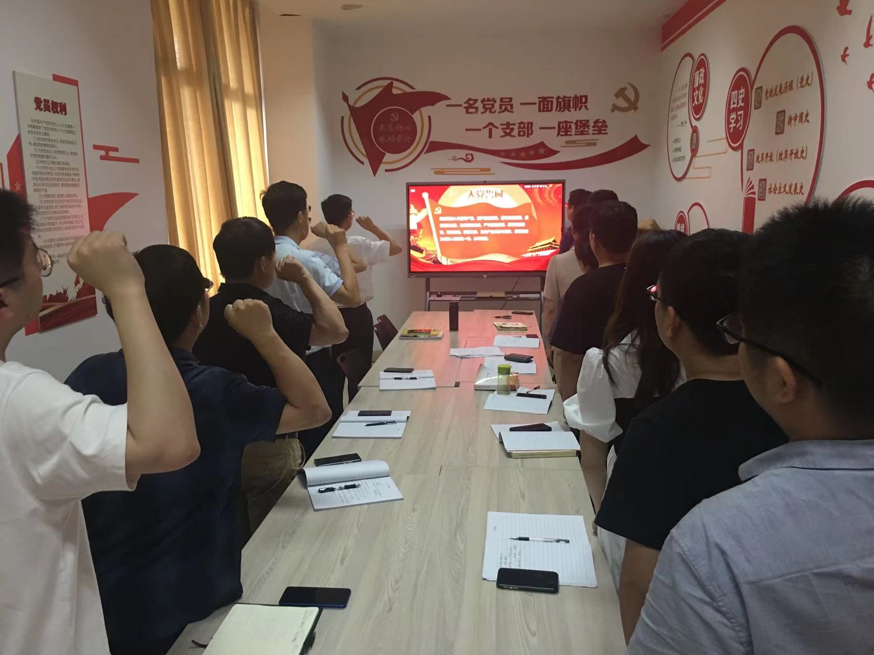 6月30日,材料学院党委委员院长朱卫国和高分子系教工党支部全体党员在材料楼431开展“重温入党誓词,坚定理想信念”迎接百年建党主题党日活动,由支部书记黄文艳主持。活动中,支部全体党员以重温入党誓词的形式,进一步强化“四个意识”,坚定理想信念,加强意识形态阵地的稳固。 面对鲜红的党旗,曹峥作为领誓人,带领支部党员一起高举右手,再次庄严宣誓。“我志愿加入中国共产党,拥护党的纲领,遵守党的章程,履行党员义务,执行党的决定,严守党的纪律,保守党的秘密,对党忠诚,积极工作,为共产主义奋斗终身,随时准备为党和人民牺牲一切,永不叛党。”铿锵恢宏的誓词,强烈震撼着在场的每一位党员,一字一句,神圣而豪迈,体现了党员同志们对中国共产党的无限忠诚。同志们通过重温入党誓词,再一次体会到了作为一名共产党员的责任感和使命感,在今后的工作中一定以昂扬的士气和创先争优的精神践行入党誓词,以踏实的工作态度和优秀的师德师风,把高分子系教工党支部凝聚在一起,为高分子材料与工程专业的学生培养和专业建设做出自己应有的贡献。
