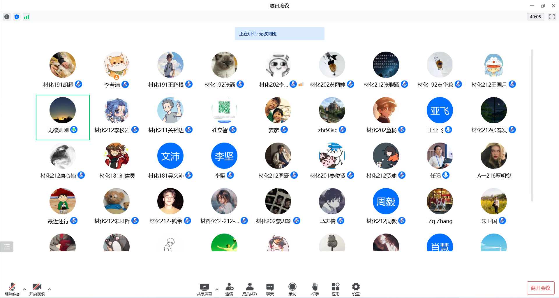 4月26日下午,材料化学专业召开线上期中座谈会。这次会议材料院院长朱卫国、材化专业老师和材化专业全体班级代表代表参加了座谈会,由辅导员李若洁老师主持。 在会议上,各年级同学针对不同的学习情况都提出了自己所遇到的问题。21级同学提出线上学习最主要的问题的是线上学习非常考验学生的自觉性,因难以约束使得学生参与的有效性相对降低,影响了学习效果。老师提出提高学生们的主动性,同时老师也会加强线上的学习管理。20级同学提出实践学习无法得到保证,老师表示根据疫情影响及相关通知,暂定将实践课程与下一学期的理论课程调换。18、19级同学的问题主要是疫情影响了正常规划的学习生活等问题。老师们就学生所提问题分别做出了详细的解答,并勉励学生们要加强自我管控,端正学习态度,努力学习,不负韶华,共克时艰。 通过本次会议,老师们察觉了线上教学存在的问题,会在今后的教学工作中针对性加强;学生们发现了自身原因,需要克服改正。师生双方表示,后续教与学过程中将齐心合力,努力圆满完成疫情条件下的教学及学习任务。