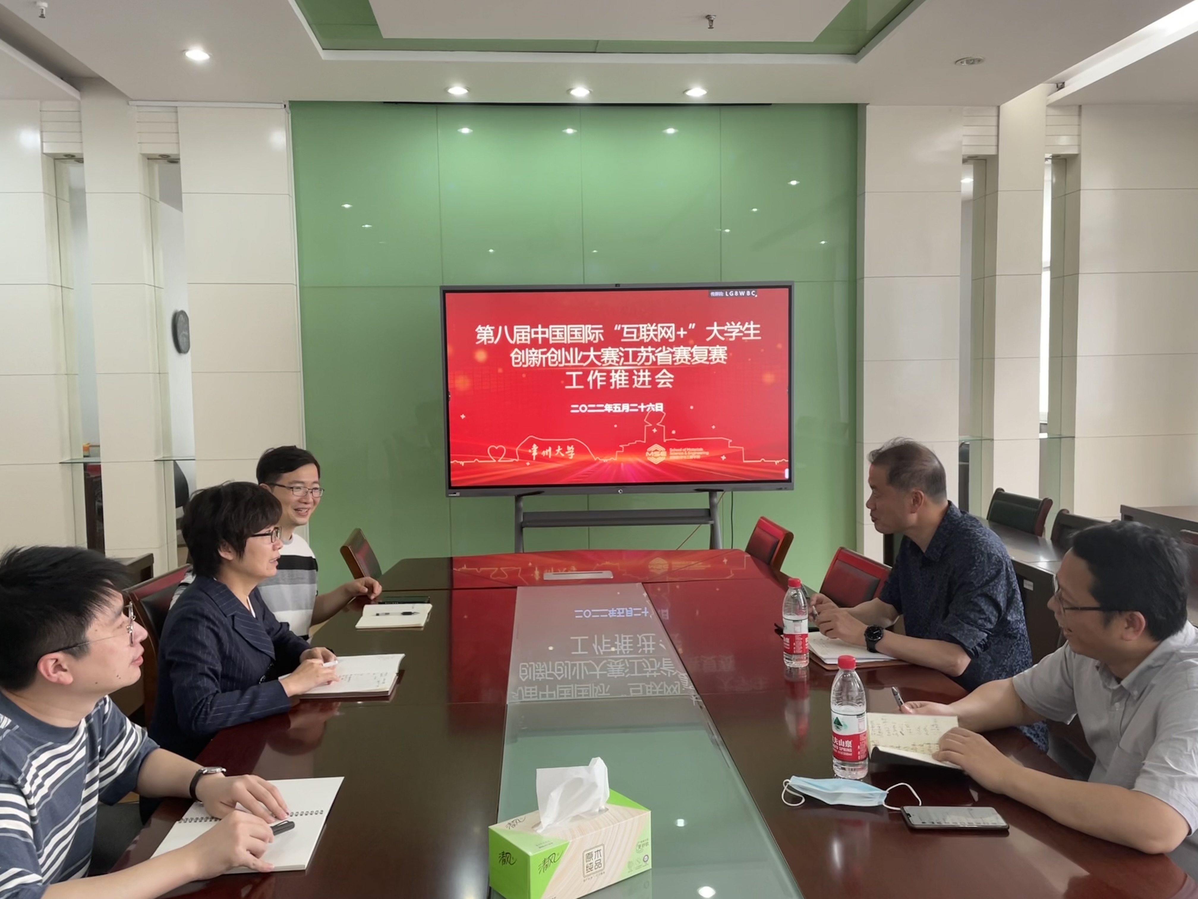 为了迎接本月底展开的第八届中国国际“互联网+”大学生创新创业大赛省赛复赛网评,材料学院于5月26日下午在材料楼406会议室举行了省赛复赛工作推进会。校创新创业教育办公室主任江一山、副主任张小远受邀参会进行指导,学院党委书记吕琳华、副院长张帅,学院入围省赛复赛项目指导老师出席推进会。 学院入围省赛复赛项目“激光膜力——VOC尾气过滤专用膜”项目指导老师成骏峰简要汇报了项目目前的准备情况。江一山强调了省赛复赛网评的评分侧重点,要求项目团队师生读懂评分细则,有的放矢,查漏补缺。张小远对项目目前的不足、邀请专家打磨、团队后续发展等问题提出了具体的意见和建议。吕琳华代表学院对学校的关心指导予以感谢,并表示将抓紧时间、通力协作,争取在今年“互联网+”大赛中取得更好成绩。