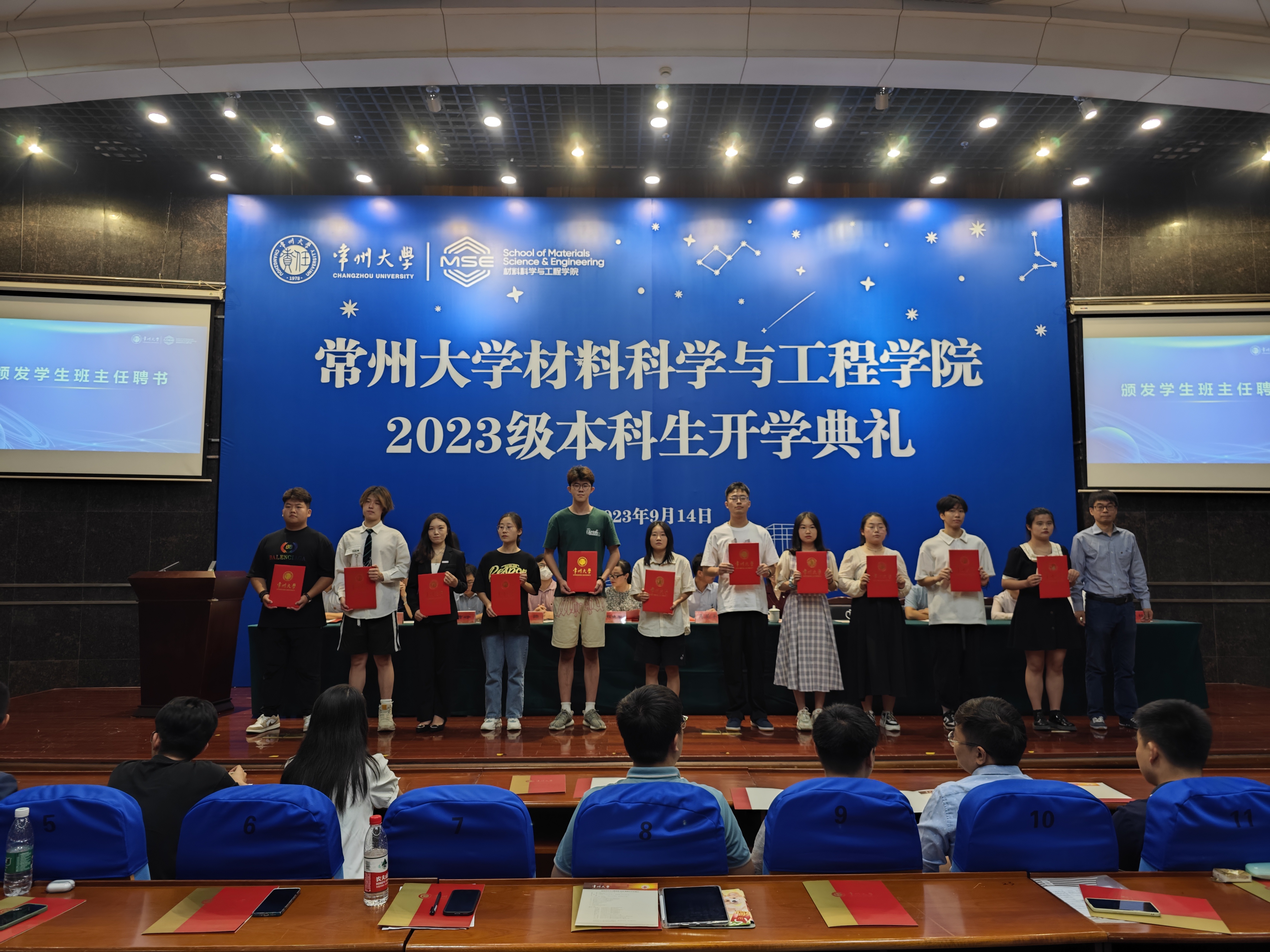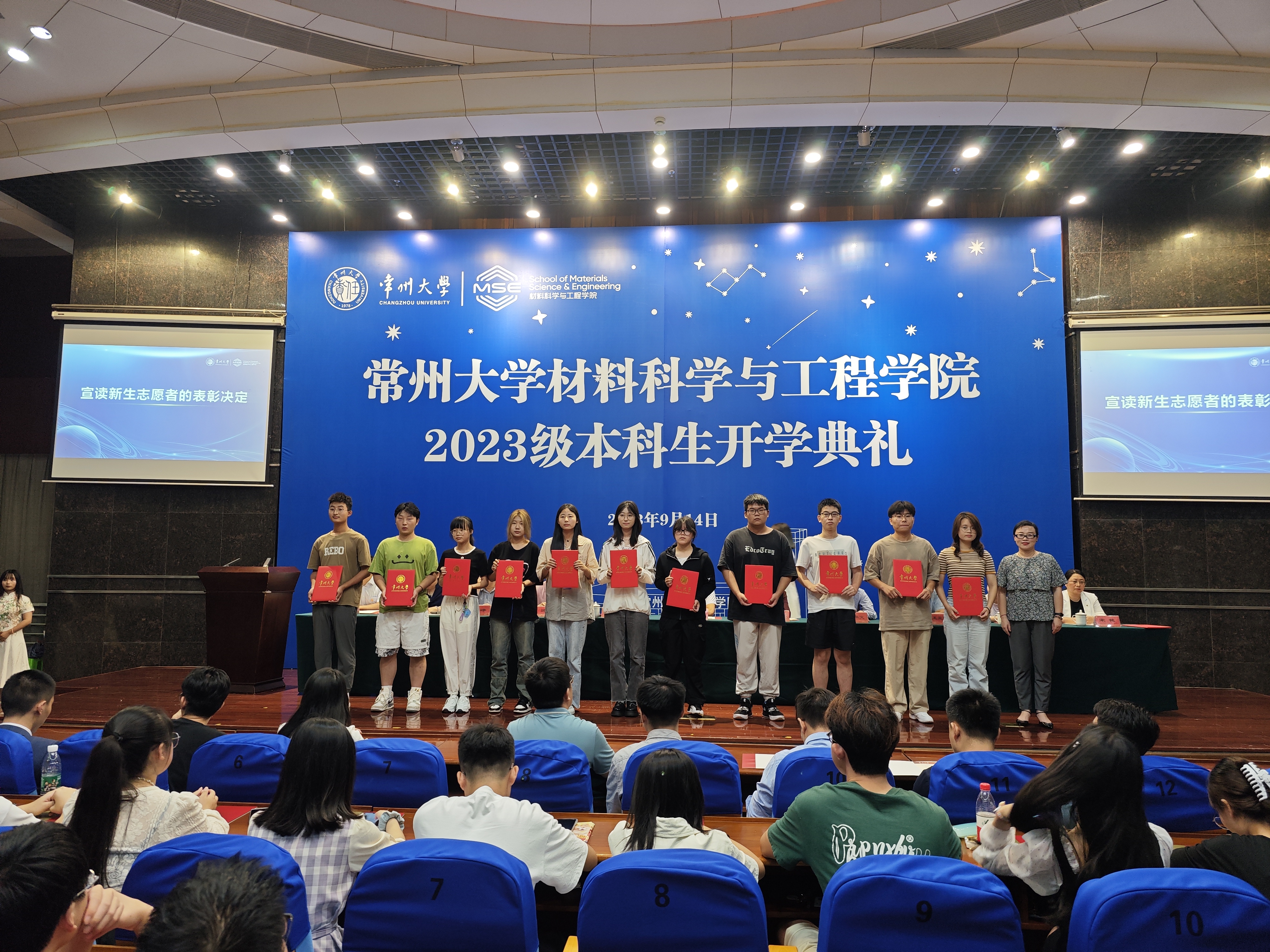 学院党委副书记程晓军宣读了《材料科学与工程学院关于表彰2023级迎新工作优秀志愿者的决定》,学院党委副书记程晓军、副院长张帅和王亚飞为本次迎新工作表现突出的33位新生志愿者颁发了奖状。