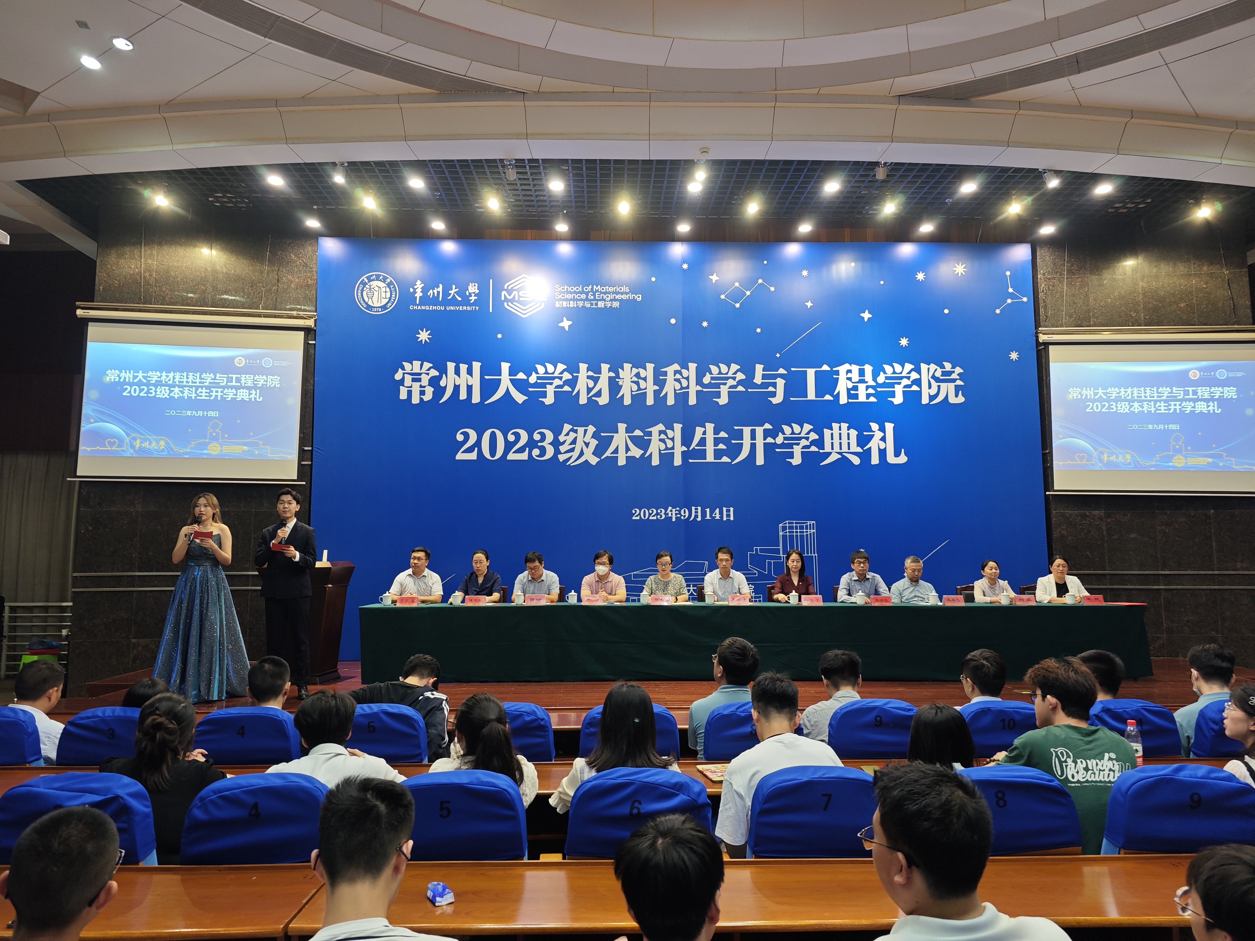 9月14日上午,材料学院在东区科教会堂隆重举办了2023级新生开学典礼,参加此次典礼的有全体院领导,各班级教师班主任、学生班主任和辅导员及2023级全体新生。本次典礼由艾雨辰和曹煜博主持。