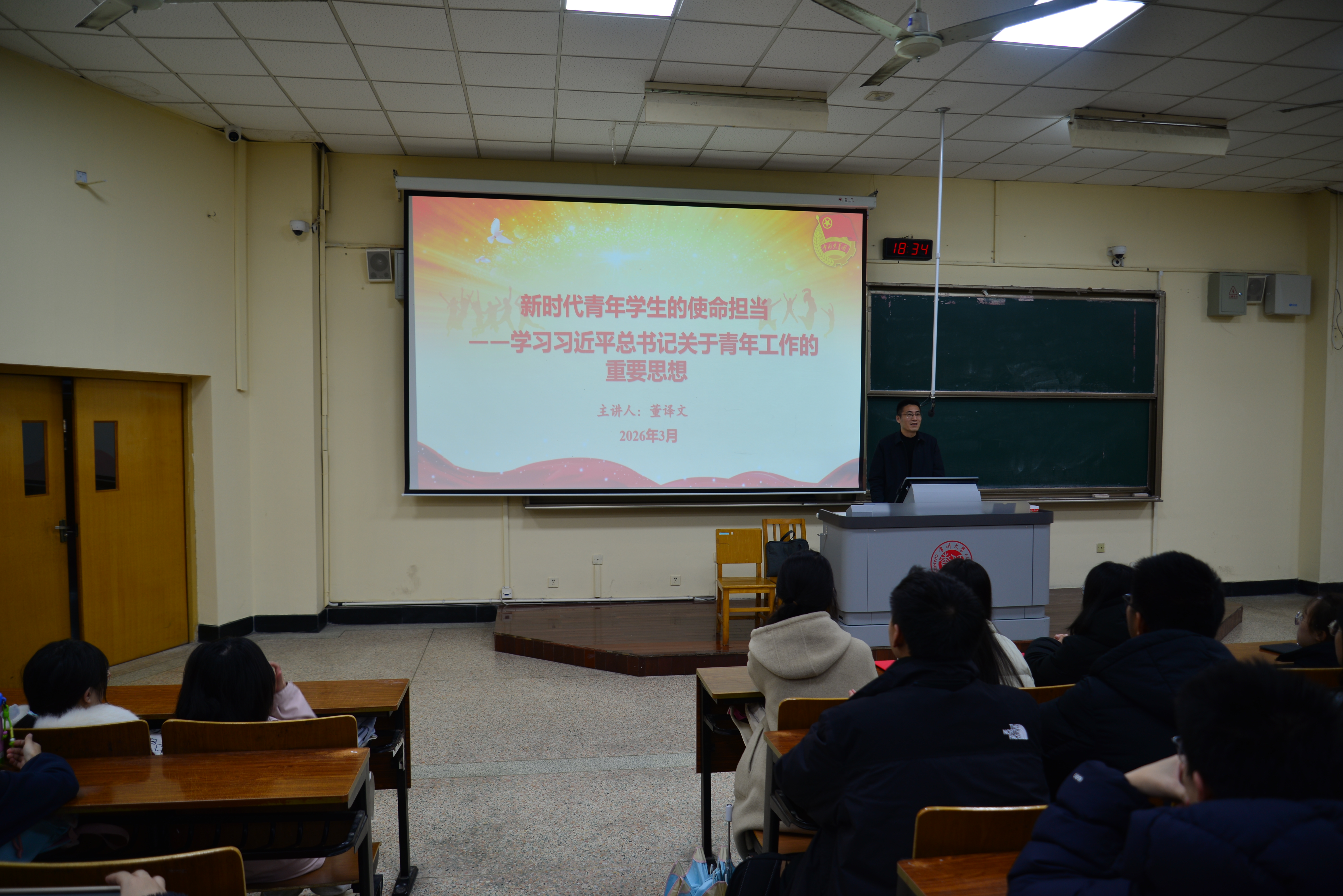 3月18日,由材料学院主办,药学院、马克思主义学院协办的2026年“青年马克思主义者培养工程”春季班开班仪式暨第一课信仰公开课在W5阶举行,校团委挂职副书记董译文受邀出席并担任主讲,材料学院、药学院和马院团工作负责人、学生代表共同参加,仪式由材料学院太雷青年学习社社长范熙莀主持。