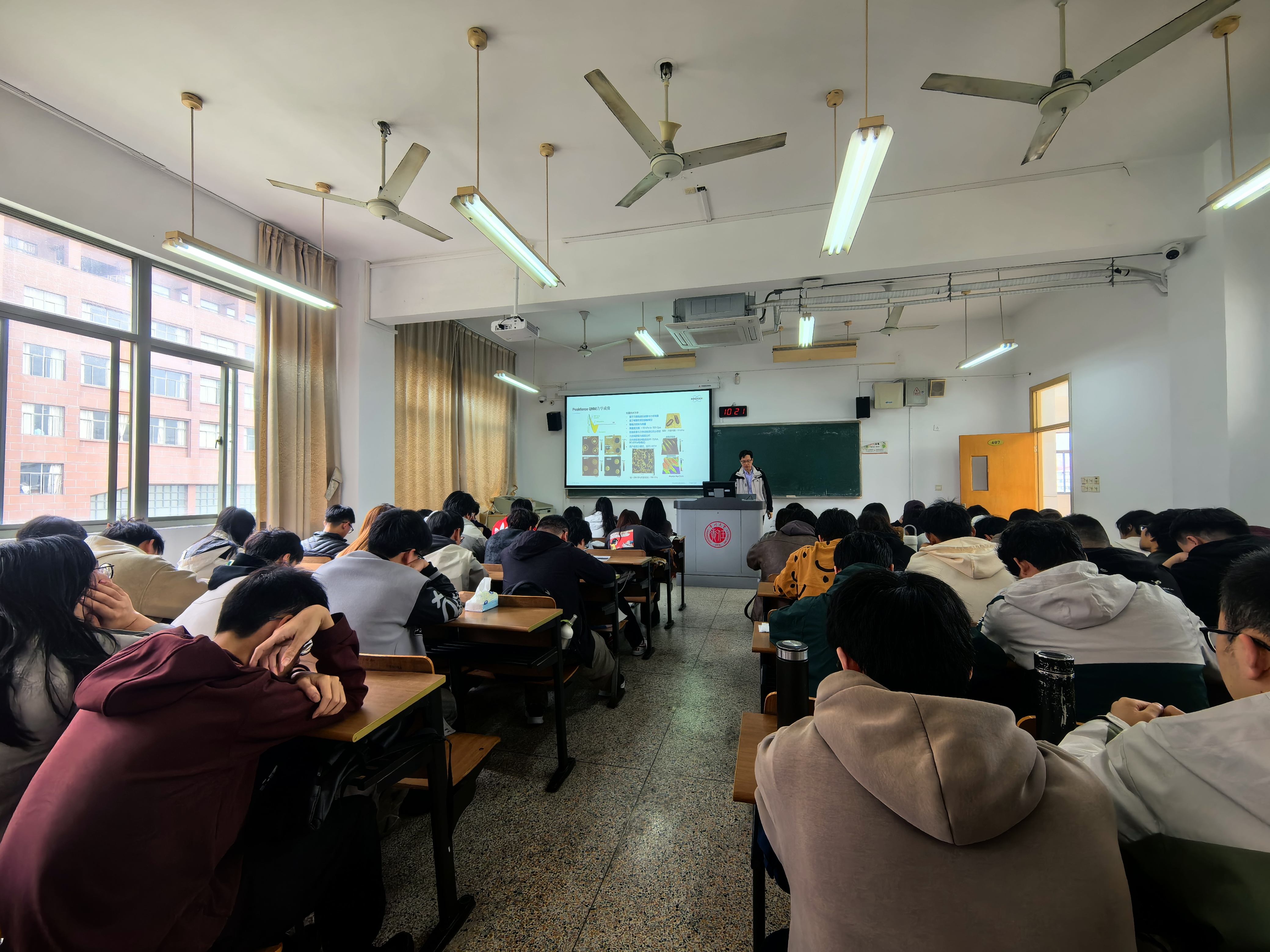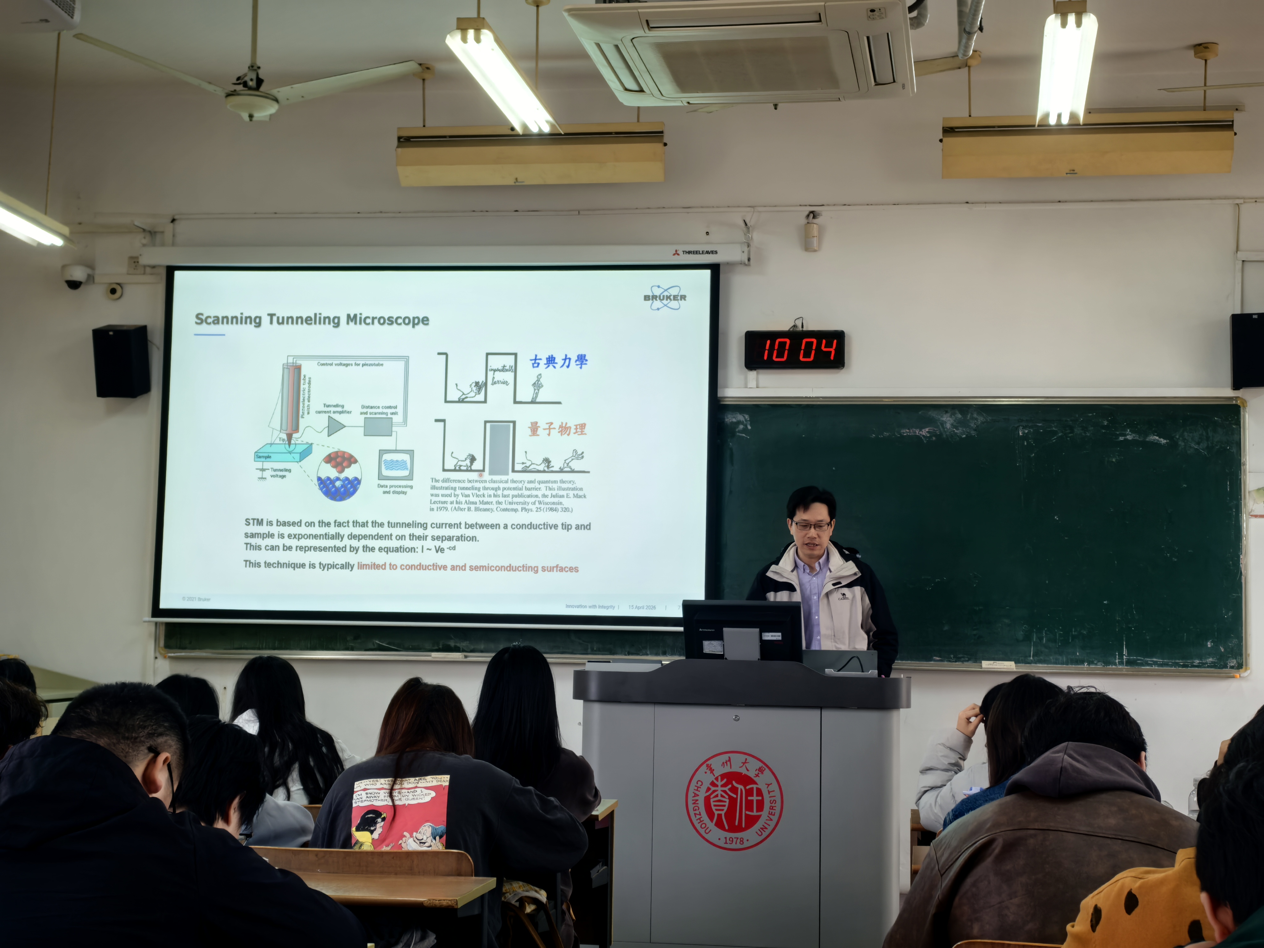 4月15-16日,为深入贯彻落实省教育厅关于“企业专家进高校大讲堂”活动,推动产教深度融合,常州大学材料科学与工程学院材料科学与工程专业在《材料现代测试方法》课程中迎来了一位特殊的主讲人。来自布鲁克(北京)科技有限公司的应用科学家殷豪博士,受邀走进大学课题,为师生带来了一场兼具理论深度与产业视角的精彩授课。 作为深耕扫描探针显微镜领域的资深专家,殷豪博士不仅拥有扎实的物理学/材料学学术背景,更积累了丰富的跨行业应用经验。在课堂上,他从扫描探针显微镜的核心原理——包括隧道电流的调控、原子力检测的光学技术——讲起,逐步深入到高分辨成像、力谱曲线分析、电学/磁学模式等前沿功能模块。结合企业家视角,殷豪博士重点分享了SPM在二维材料表征、半导体失效分析、生物样品原位观察等产业界的真实应用案例。课程还设置了互动研讨环节,同学们围绕“样品处理”、“生物试样测试”以及“电流测量数量级”等话题与专家展开热烈讨论。 此次授课邀请企业一线应用科学家深度参与高年级本科生课程教学,不仅实现了学术前沿与产业需求的精准对接,更通过“以案促学”激发了学生的创新思维与工程素养。未来,专业将继续联合行业领军企业,探索“课程共建、师资共享、课题共研”的协同育人模式,为培养具备国际视野和实战能力的高层次测试分析人才提供坚实支撑。